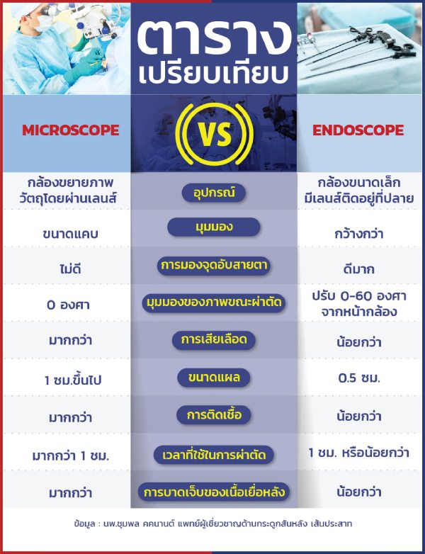 ตารางเปรียบเทียบกล้องผ่าตัดระหว่าง กล้อง Microscope และ กล้อง Endoscope